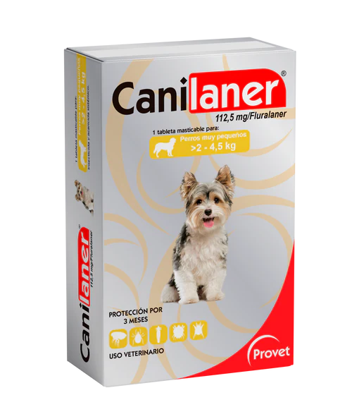 Canilaner es una tableta masticable saborizada, que contiene fluralaner micronizado. Esta indicado como insecticida y acaricida sistémico para el tratamiento y control de pulgas, garrapatas y ácaros de la sarna, con protección persistente por 12 semanas, tras una única administración.