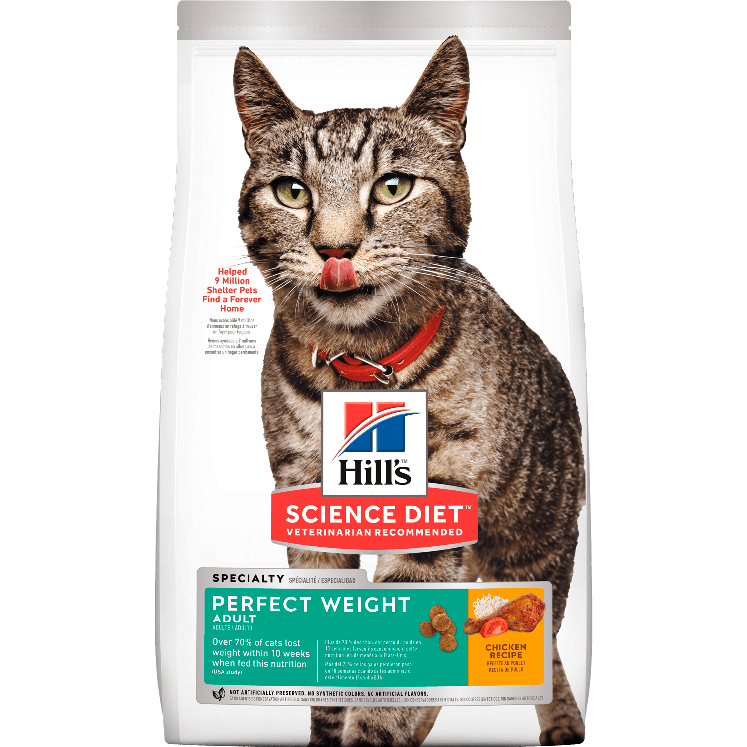 El alimento seco para gatos Hill's Science Diet Perfect Weight proporciona una nutrición deliciosa e innovadora para el control del peso con tecnología clínicamente probada para: - Pérdida de peso segura y eficaz con resultados visibles en 10 semanas. - Mantenimiento de peso saludable y soporte de peso duradero. - Conservación de la masa magra.